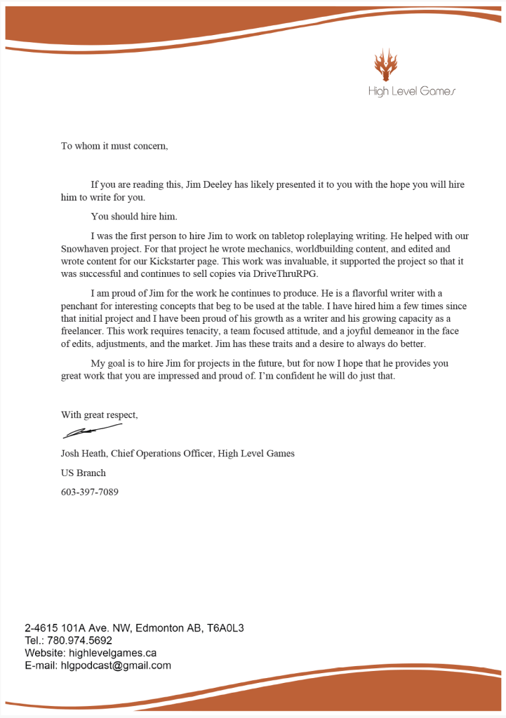 Freelance RPG Writer